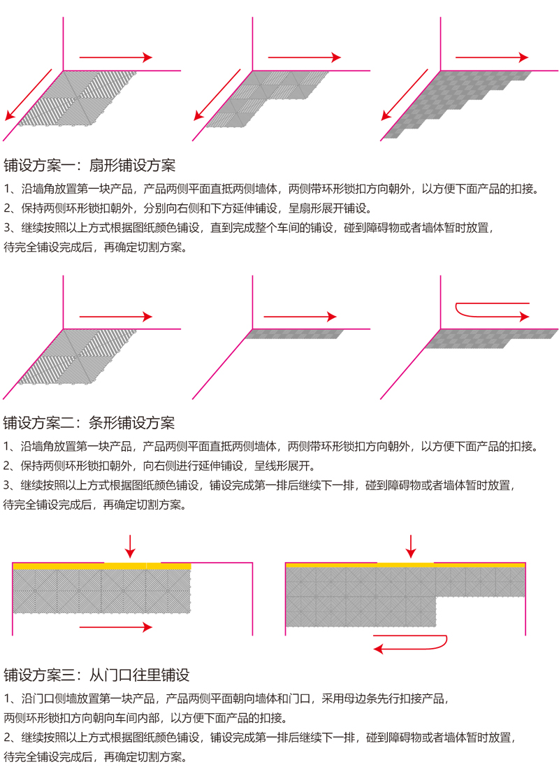 1、大孔徑排水、排泥沙更通暢。    2、鉆石紋面層設(shè)計,防滑美觀。    3、加強鎖扣設(shè)計更牢固,適用于凹凸不平地面