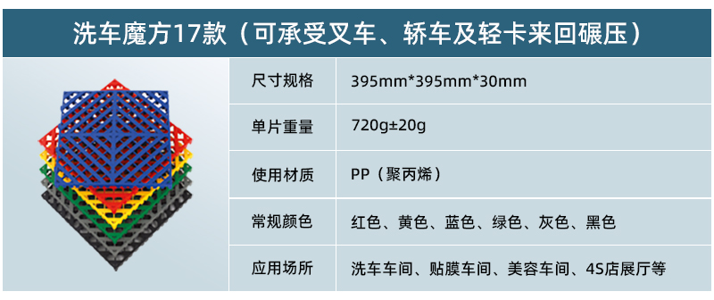 正和17款洗車魔方具有大孔徑排水和排泥沙的功能,下方支撐空間更大,鎖扣更加牢固,鋪裝方便快捷,效果美觀大方,解決了地下室、地暖系統(tǒng)的洗車難題,成為洗車車間地面的全新選擇。洗車魔方集玻璃鋼格柵的超強承載,排水排沙功能和拼接格柵的色彩絢麗,安裝方便功能于一身,是一款真正免挖溝一次性解決洗車間地面問題的超高性價比產(chǎn)品!